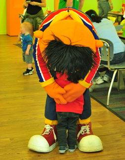 Ryan spent most of lunchtime going from each character to each character to hug them. Not shy anymore!